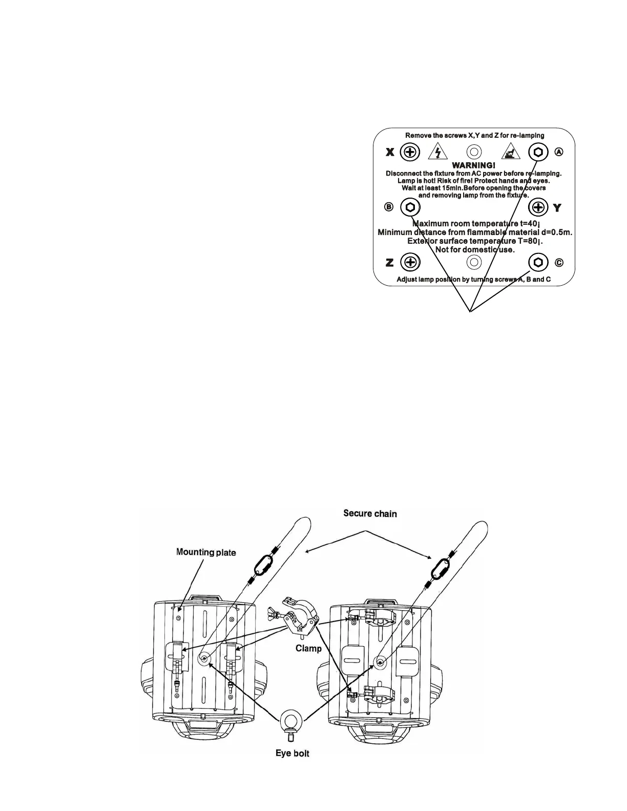 secondary mounting points. Do not mount in a place where the fixture will be exposed to rain,