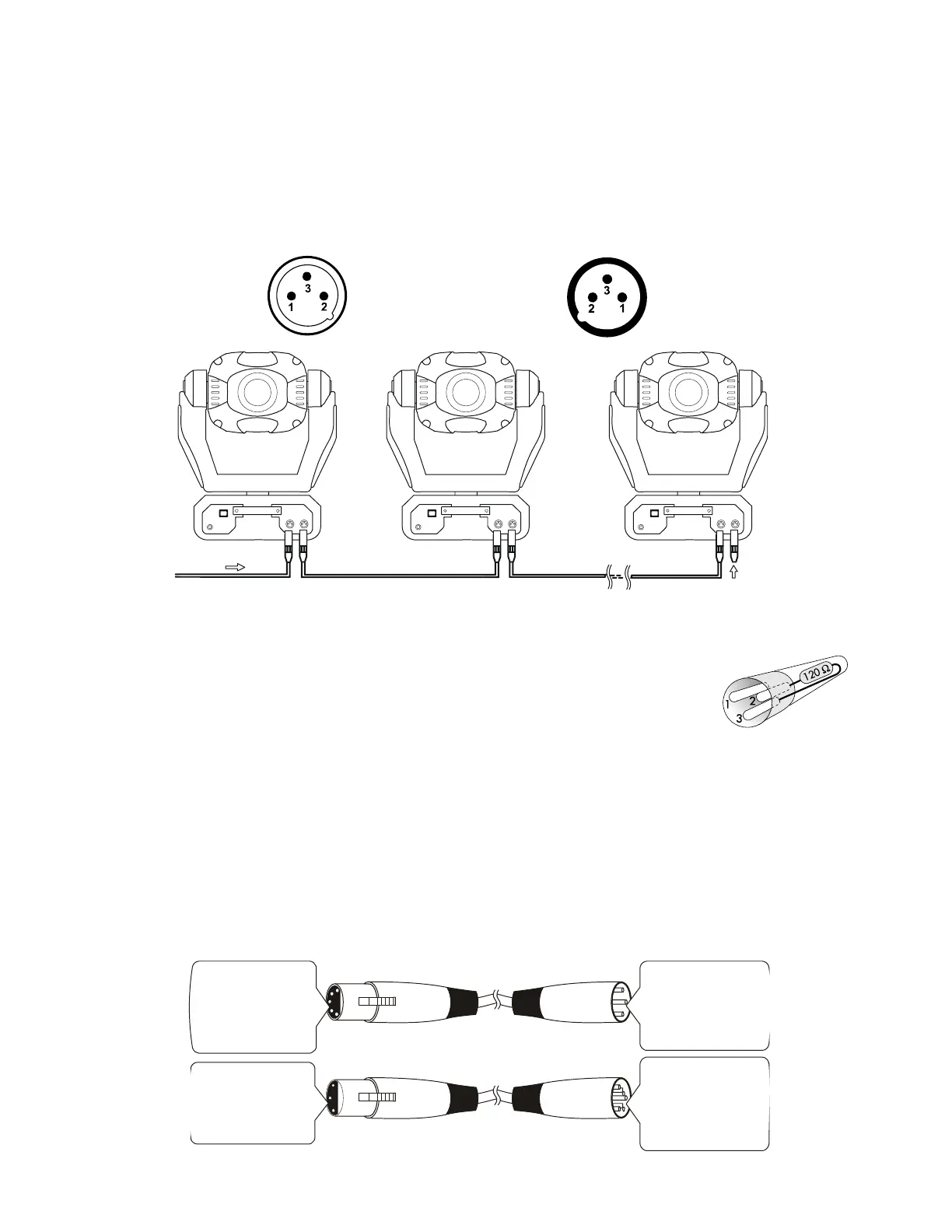 For data, this fixture uses 3 pin XLR (Cannon) type connectors and shielded twisted pair cable