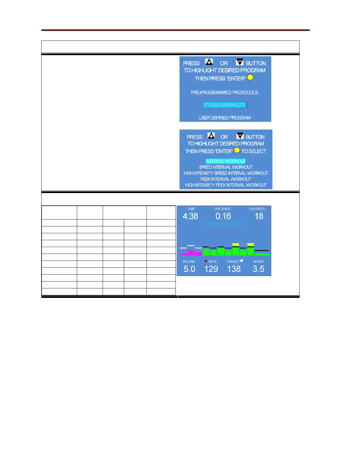 NOTE: Any of the Fitness Interval Training