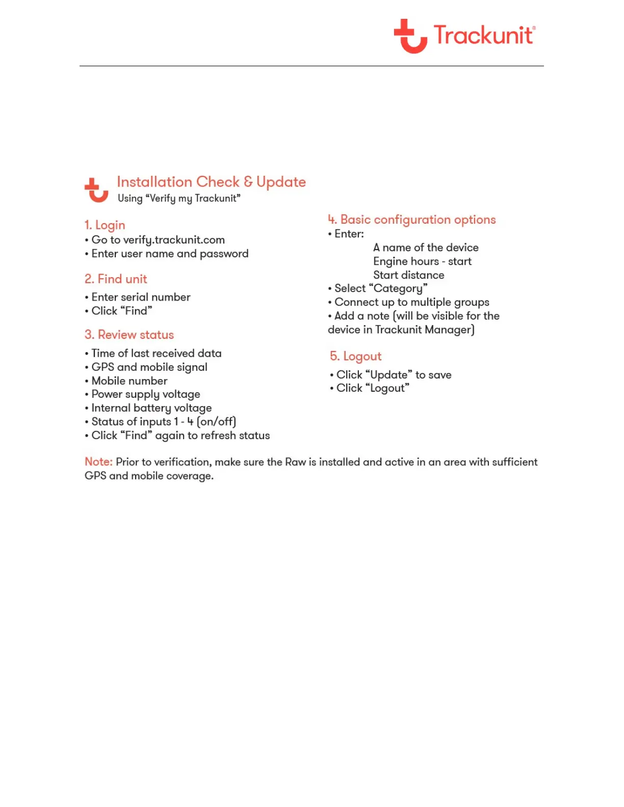 Trackunit TU600-25 - Installation Verification; Using the Verify Trackunit Tool