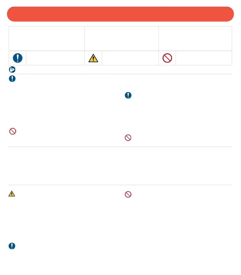 - Signifies a mandatory action - Signifies a general warning - Signifies a prohibited action