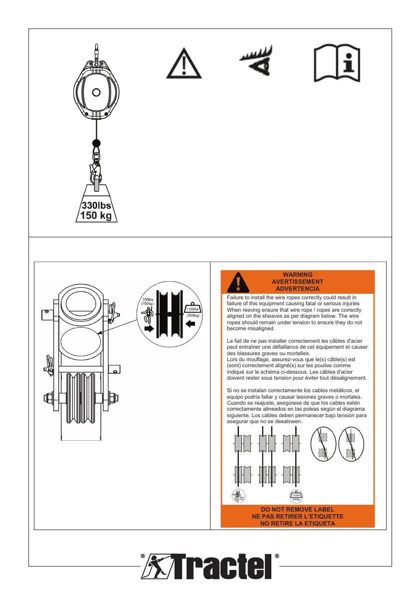 Lors du mouflage, assurez-vous que le(s) câble(s) est