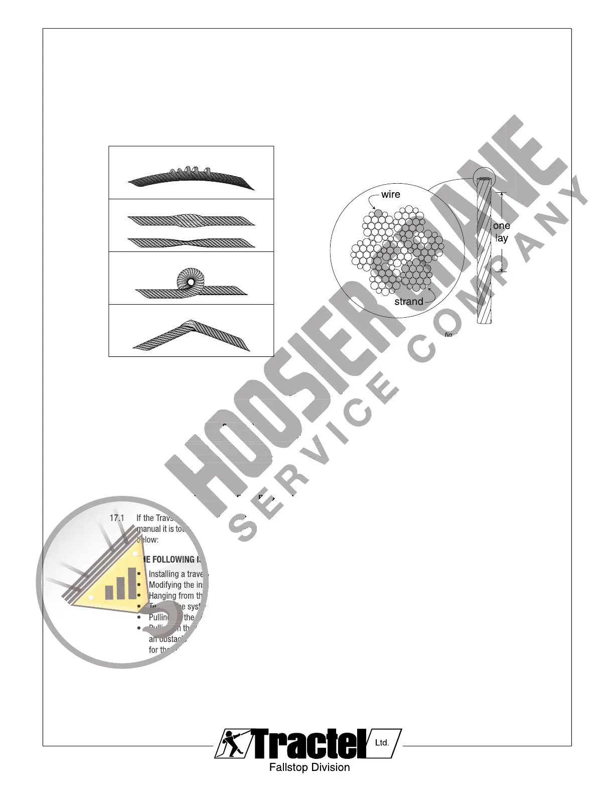 • Installing a traveller or similar device or item other than that sold by Tractel on the wire ropes.