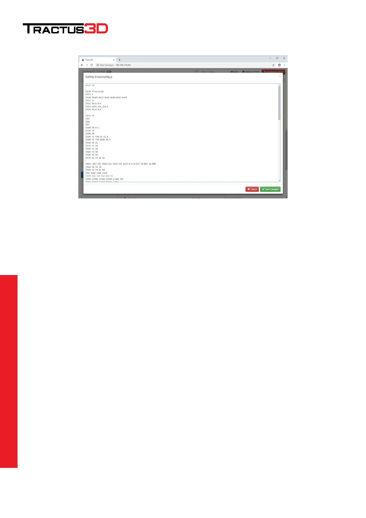 M552 Pxxx.xxx.xxx.xxx (Where xxx.xxx.xxx.xxx is your IP address, for example: M552 P192.168.1.10)