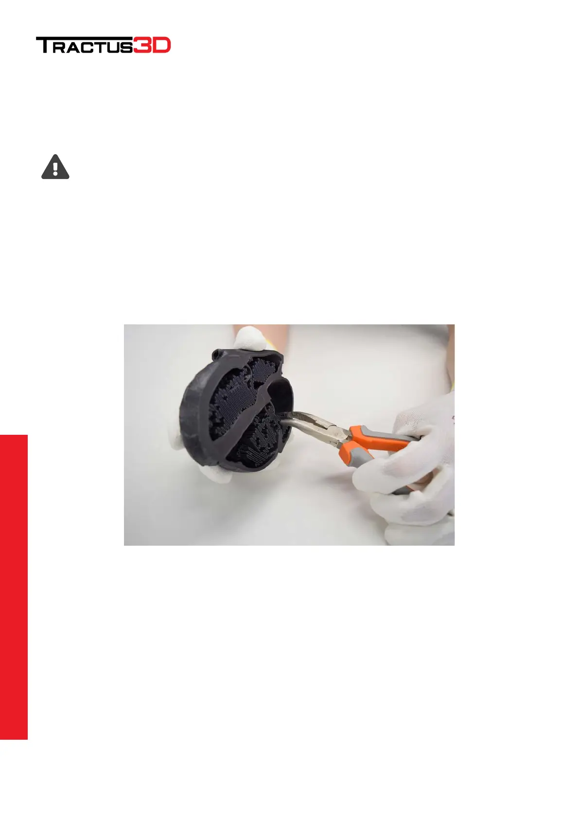 It is advised to wear protective gloves when the support structure contains sharp corners or half broken parts.