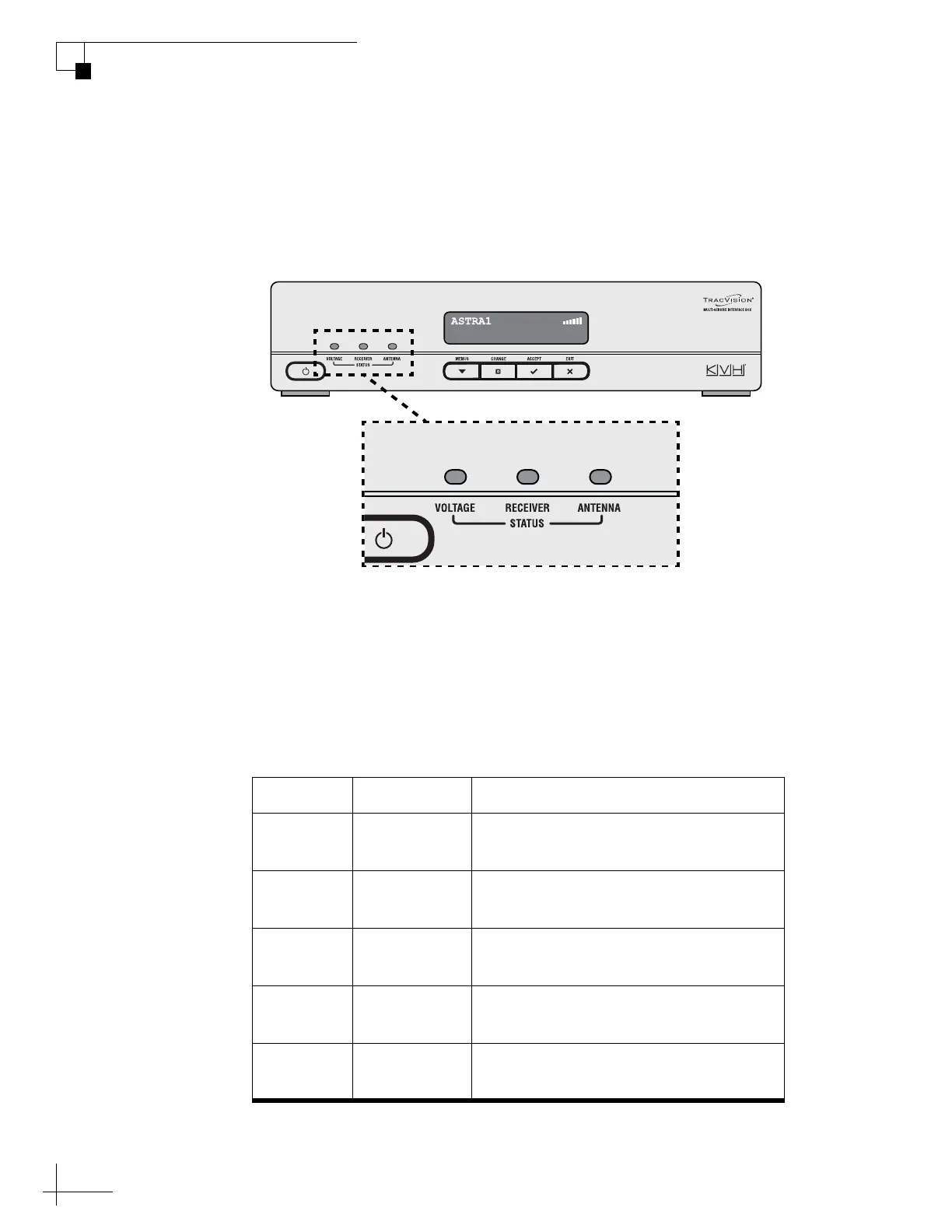 Three status lights on the front of the receiver indicate the current