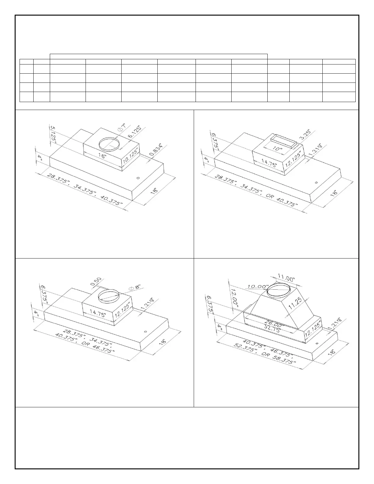 2. Vent is 8” (models 430 & 436) or 10” (442, 448, 454, & 460).