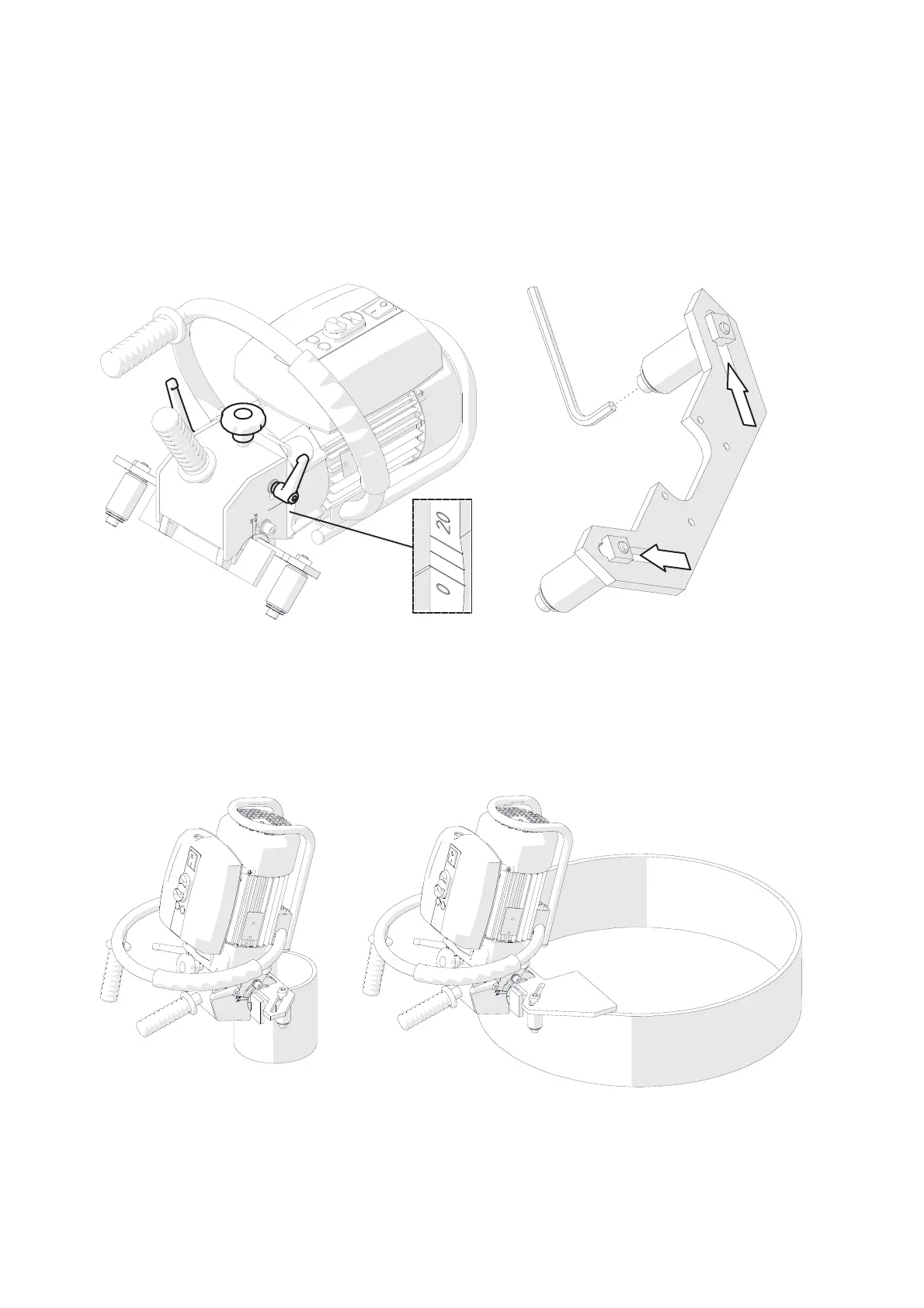 Place the machine on a vertically positioned pipe in such a way to bring the