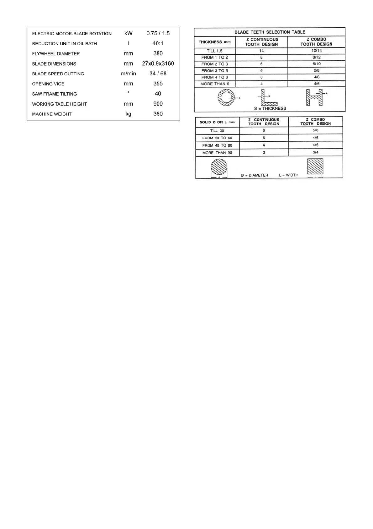 part to be cut, selection of the type of cutting blade,