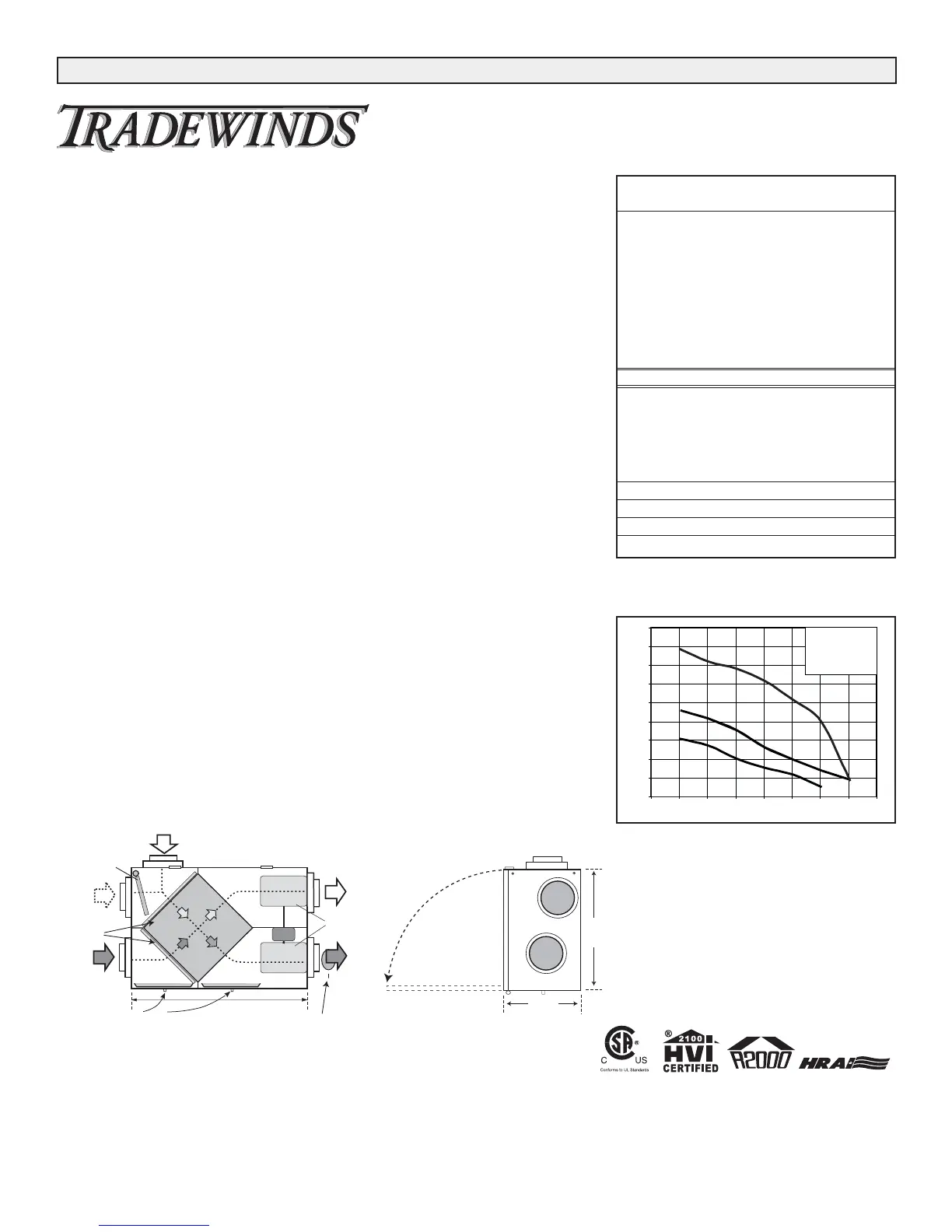 Note: Effectiveness - based on temp. differential between the 2 airstreams