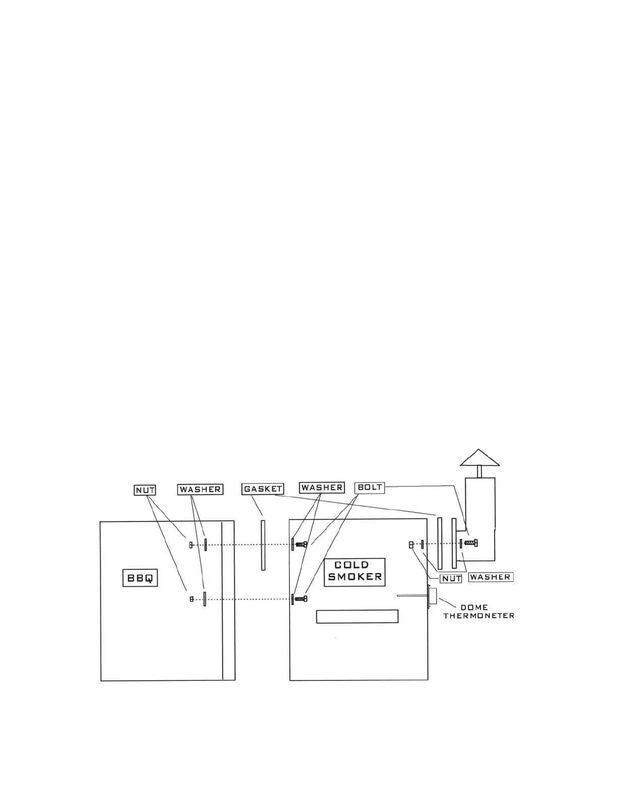4) Carefully pick up the cold smoker unit and insert the 2-¼” bolts