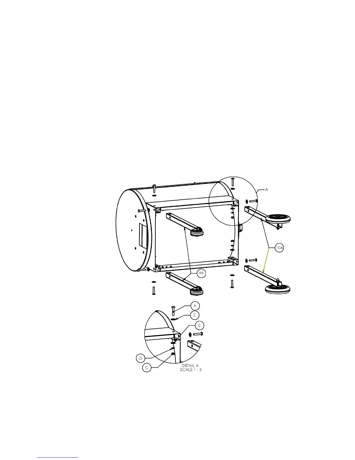 diagram below. The Nuts (C) on the Wheel Leg Assemblies (104) should go