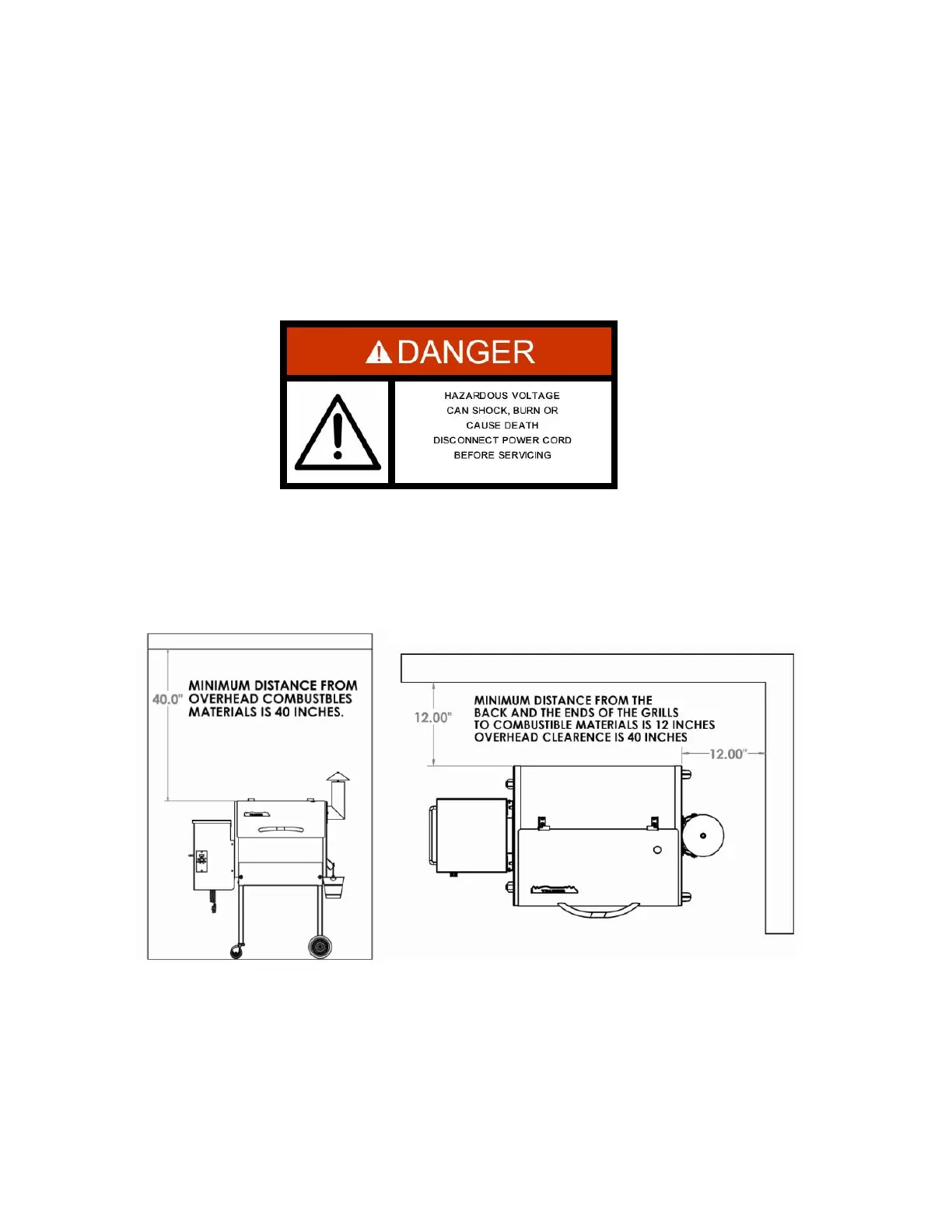 WARNING! When operating this Grill under overhead combustibles a MINIMUM of 40 inches is required.