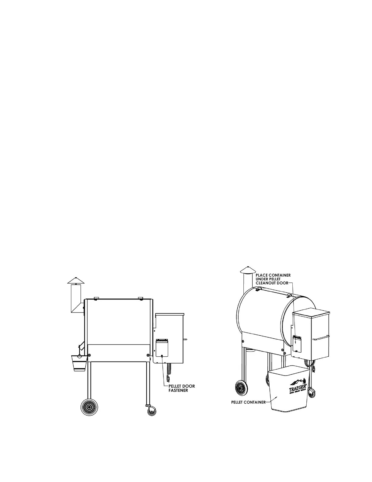 1) Place a container large enough to hold the discharged pellets (16lbs when full)