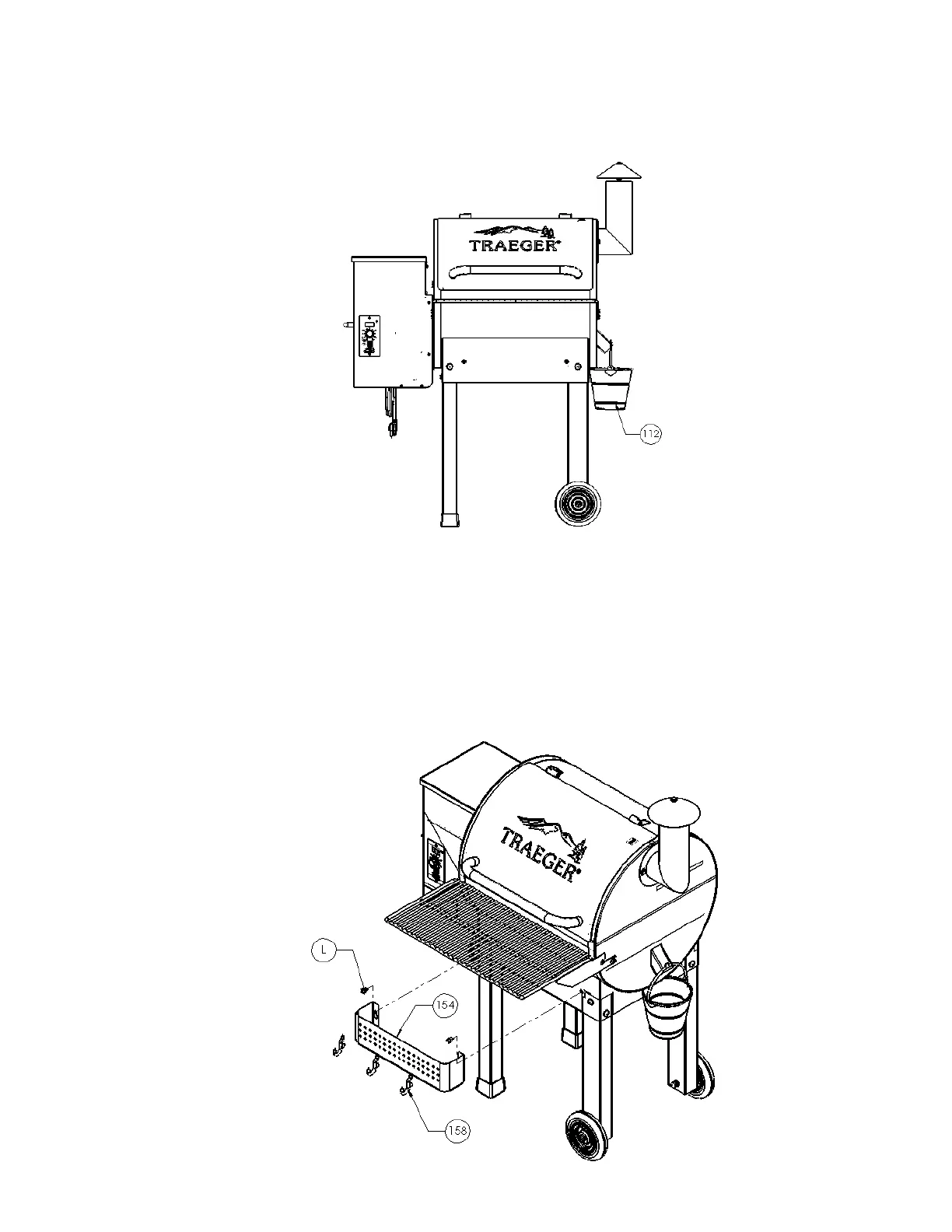 on the right end. Hang the Grease Bucket (112) on the Bucket Hook.