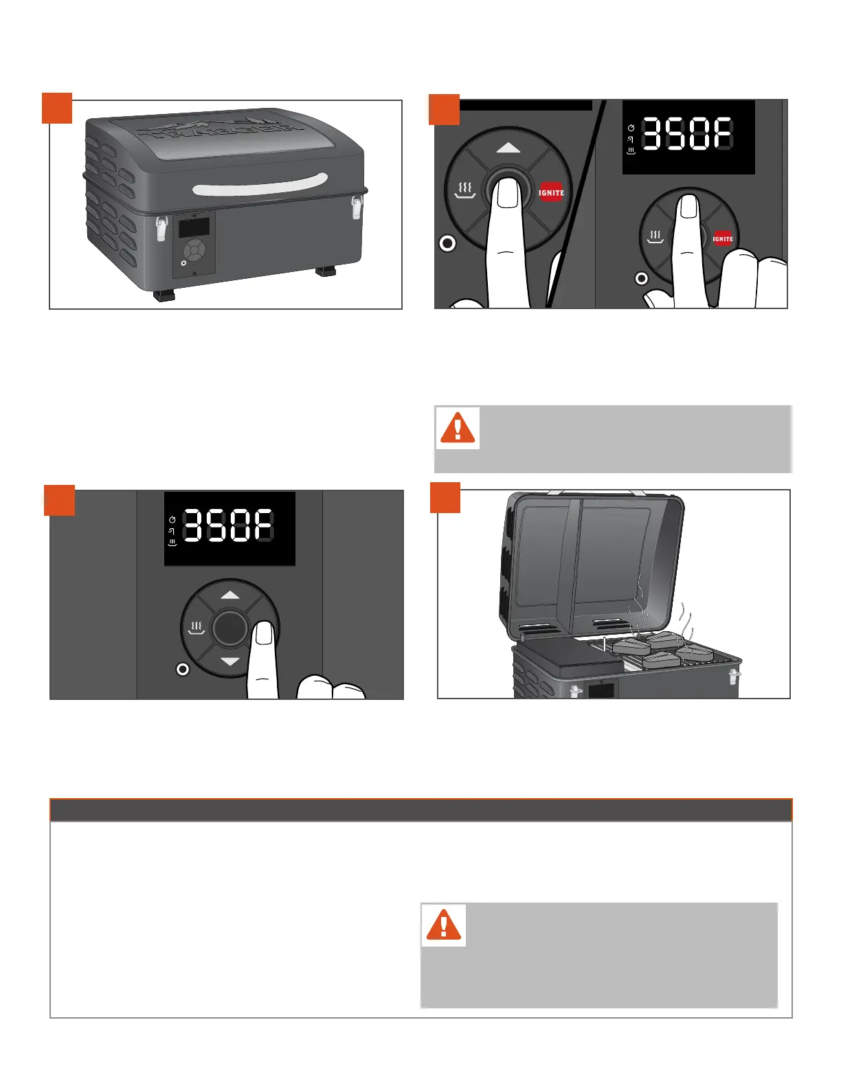 Once the desired temperature is displayed, press IGNITE. Allow grill to