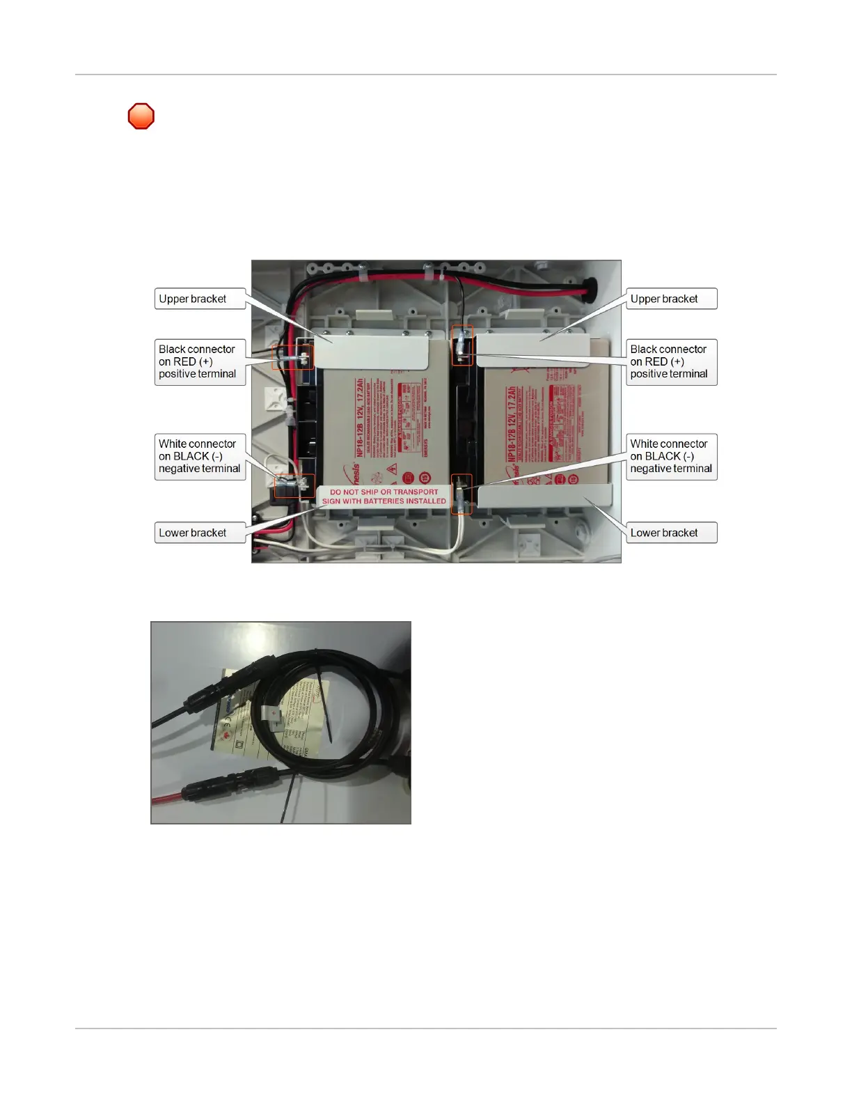 2. Insert the connectors from the sign into the corresponding connectors from the solar panel as shown