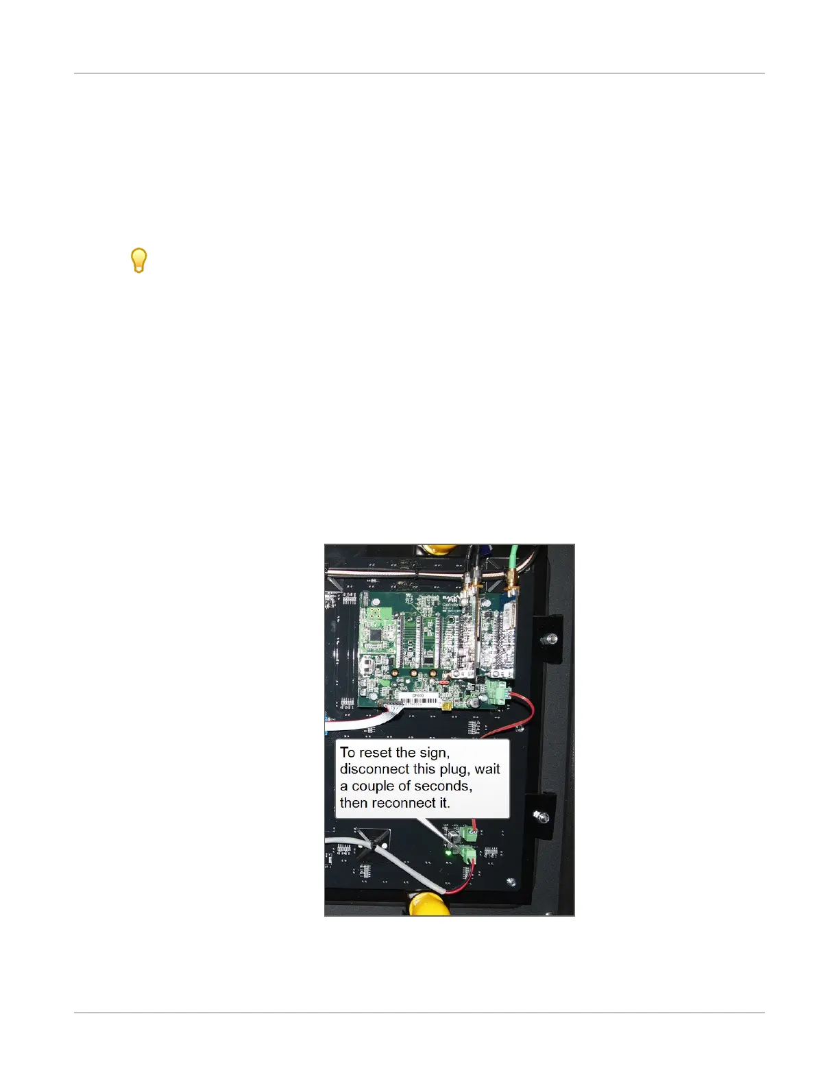 the power source is connected. There is also no reset button on the controller card included with this sign.