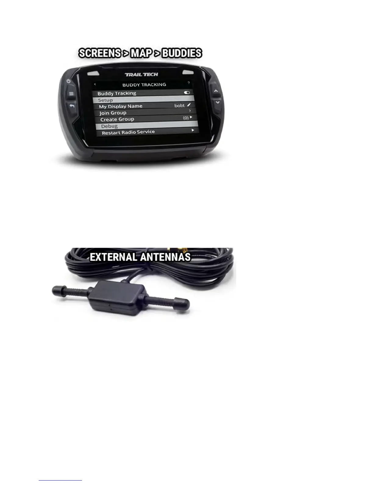 things in the way, the shorter the range. An external Trail Tech antenna is