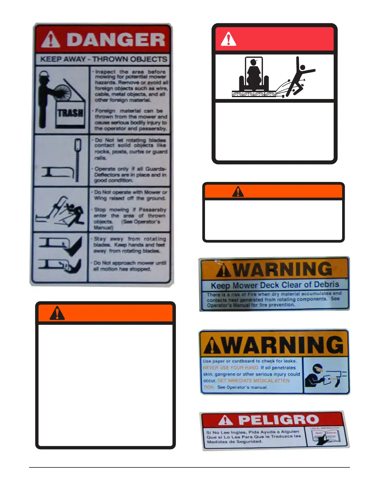 Do not permit riders on the tractor or mower. Never