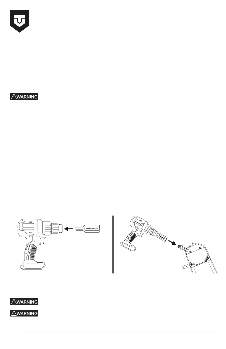 NOTE: If you are using a drill, be sure your battery pack is fully charged before use. Follow your