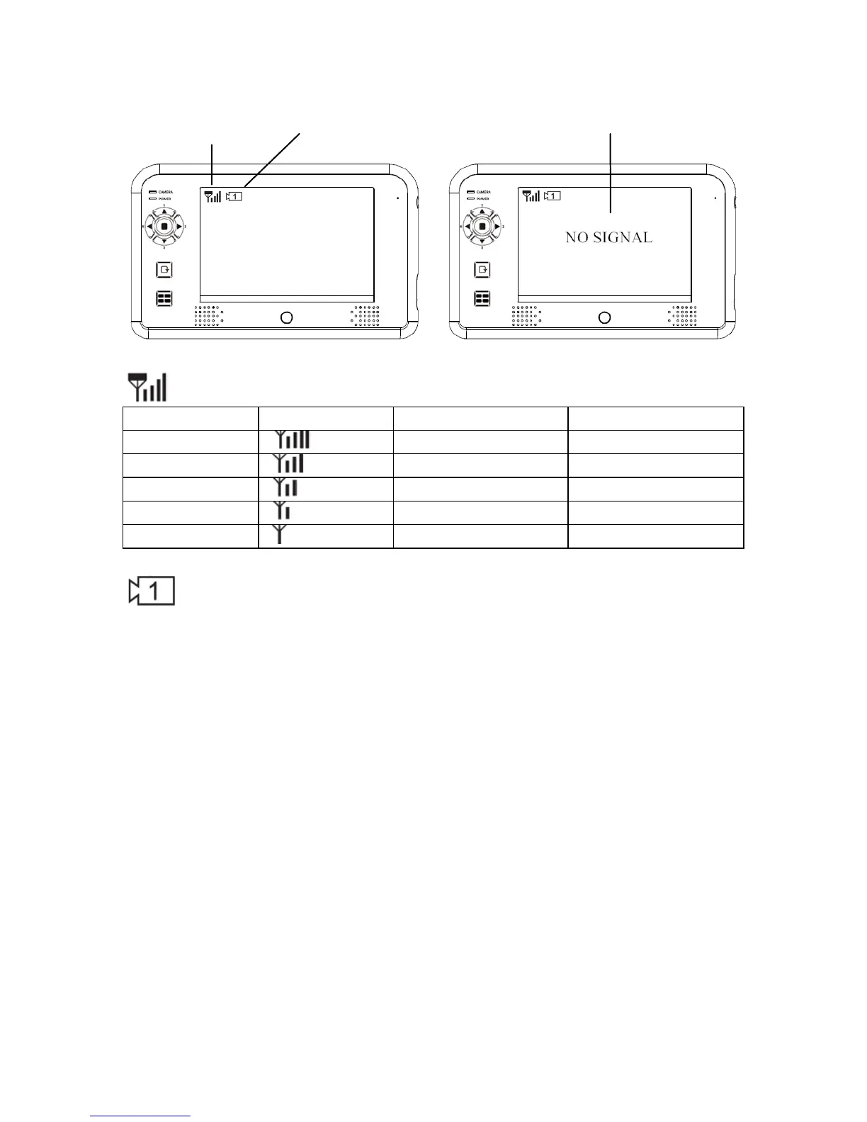 Signal Indicator shows signal strength as below: