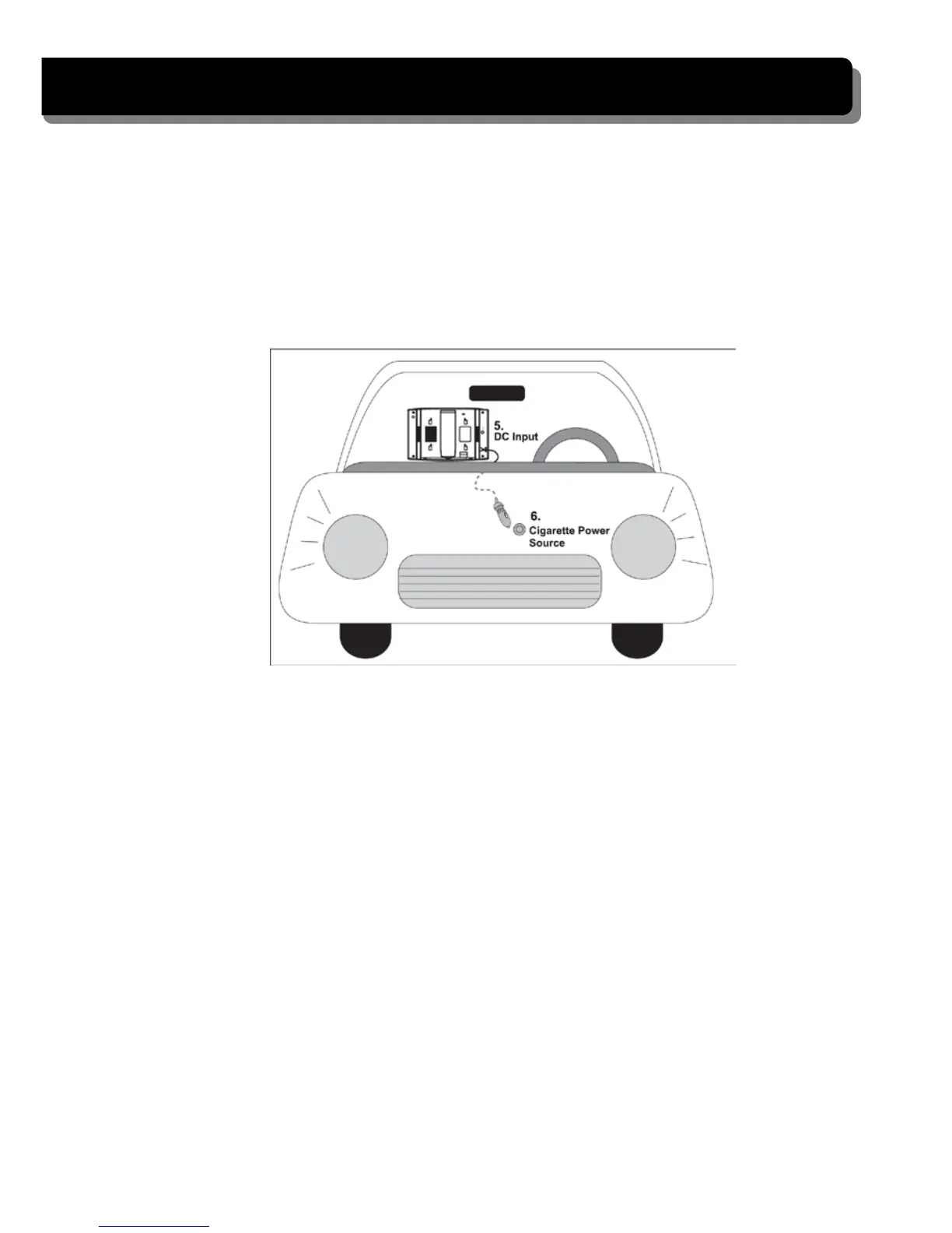 7. Plug the power unit into the cigarette power source, turn on the ignition and