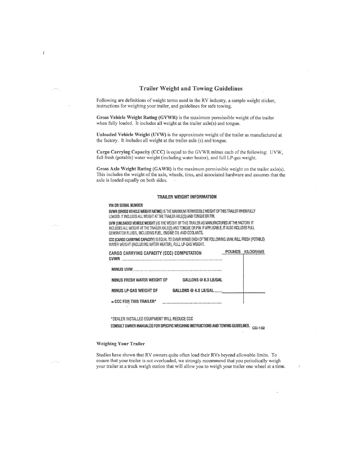TrailManor 3023 - TRAILER WEIGHT AND TOWING GUIDELINES