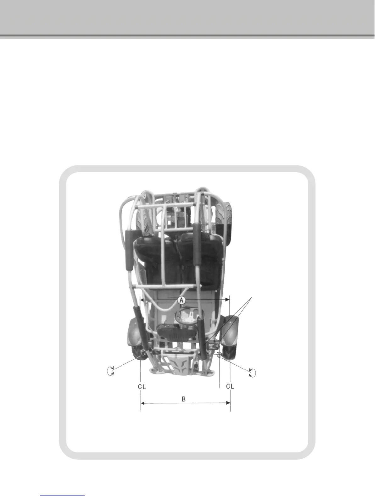 a. The front wheels should be toe in from 1/8 to 1/4 inch. Measure the distance A and B between