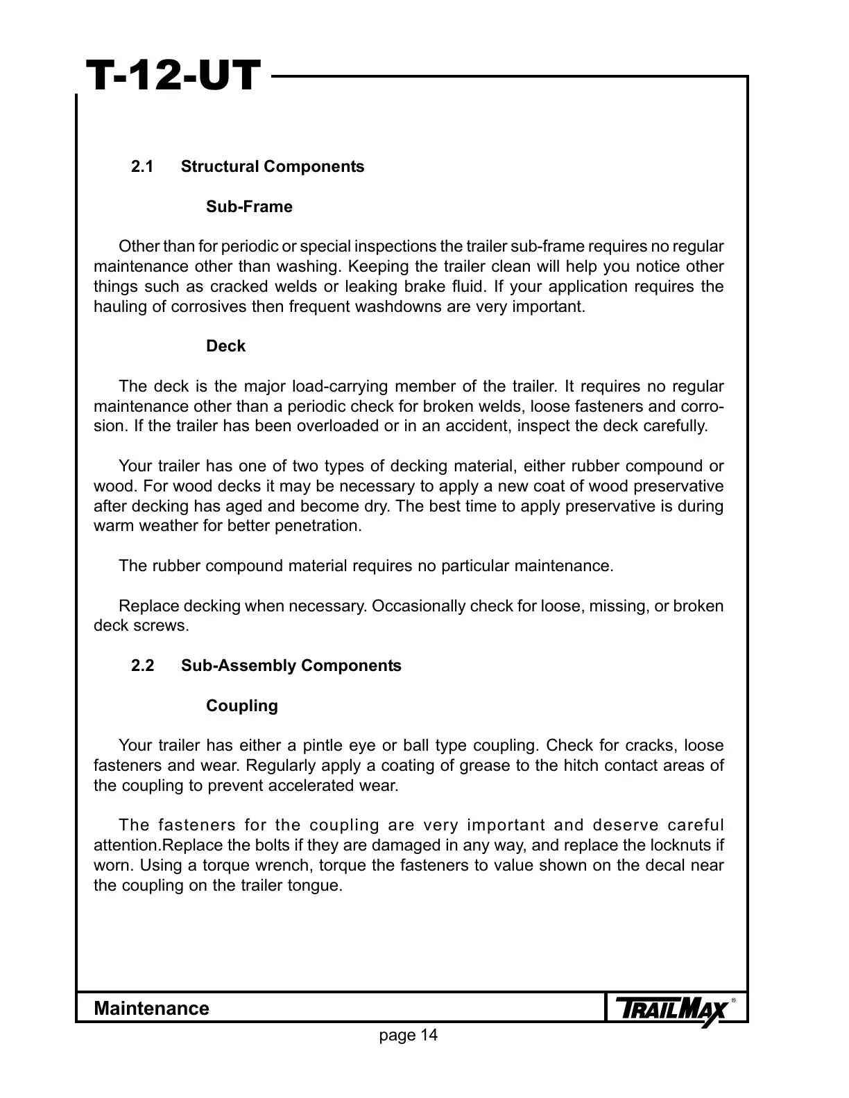 sion. If the trailer has been overloaded or in an accident, inspect the deck carefully.