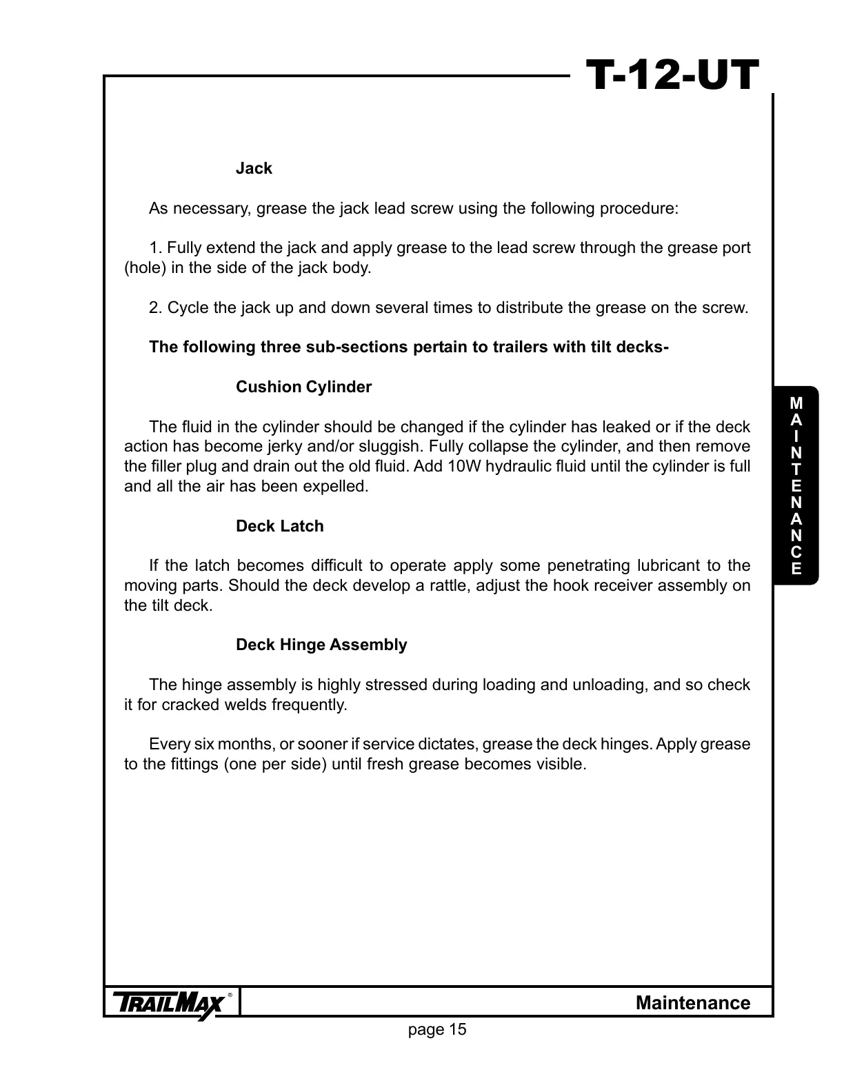 moving parts. Should the deck develop a rattle, adjust the hook receiver assembly on