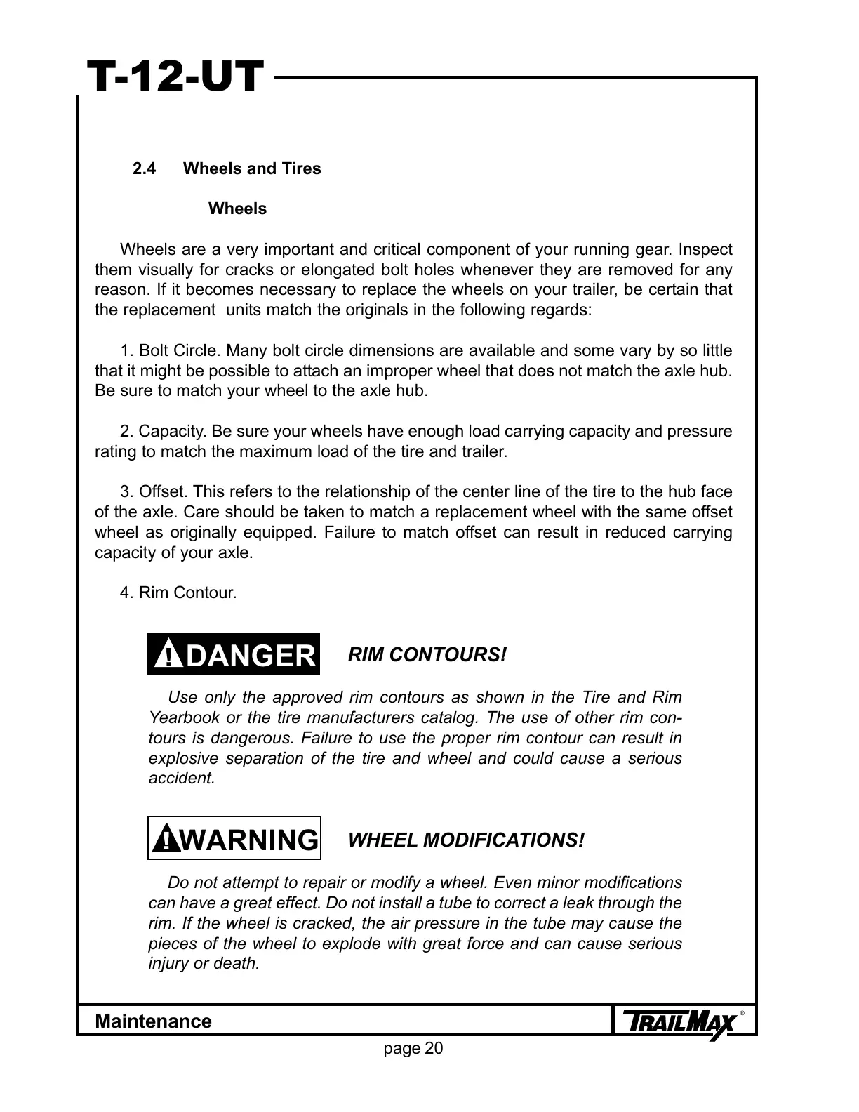 reason. If it becomes necessary to replace the wheels on your trailer, be certain that