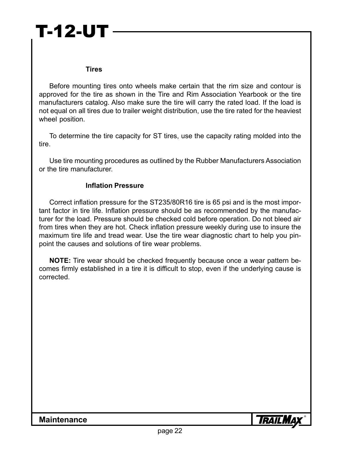 tant factor in tire life. Inflation pressure should be as recommended by the manufac-
