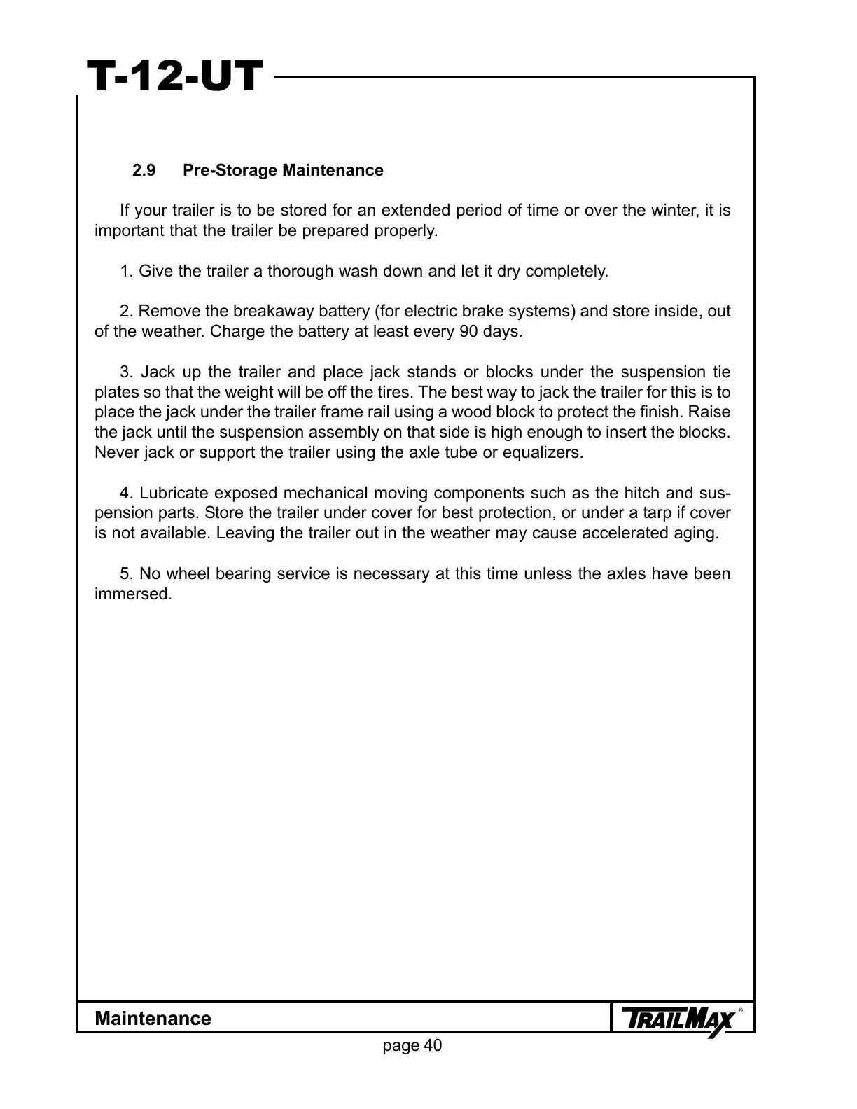 pension parts. Store the trailer under cover for best protection, or under a tarp if cover