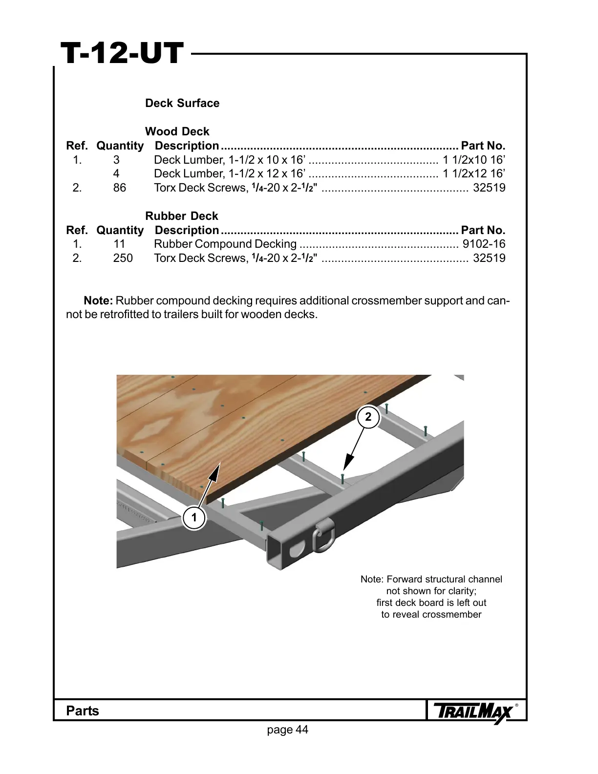 Note: Rubber compound decking requires additional crossmember support and can-
