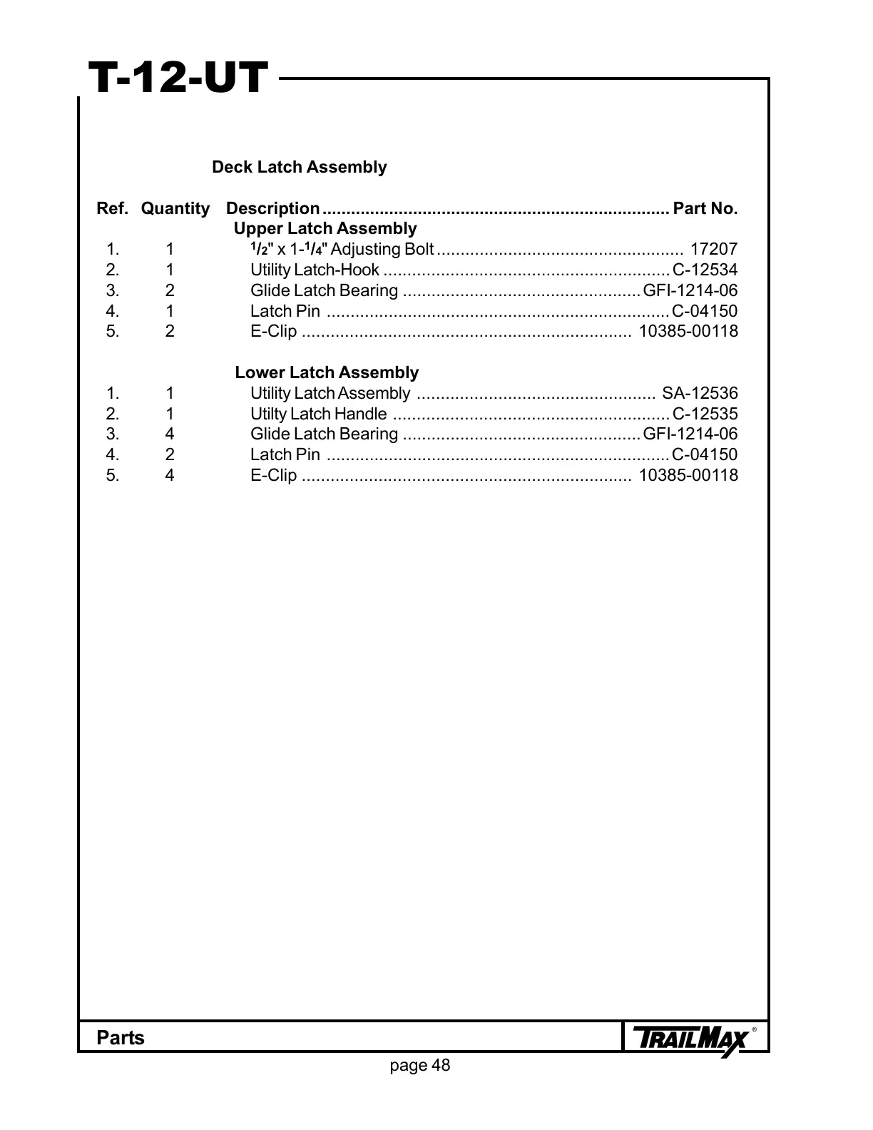 1. 1 Utility Latch Assembly .................................................. SA-12536