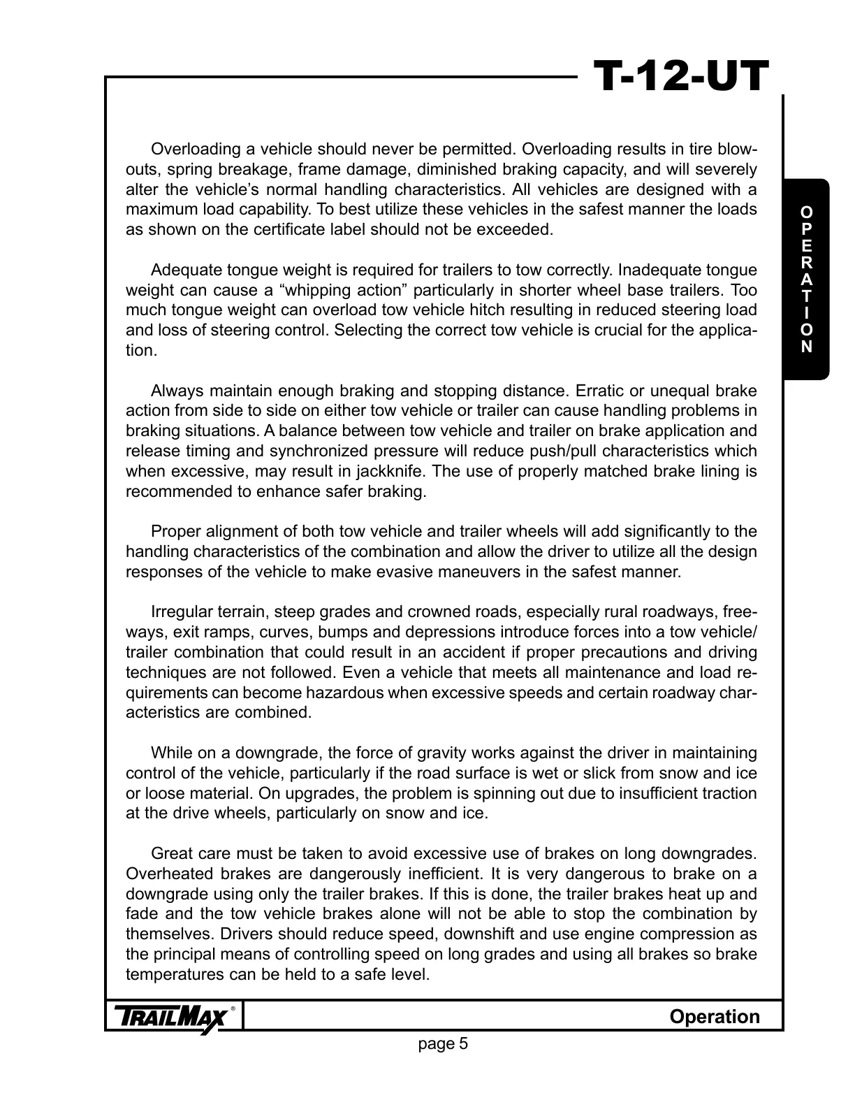 weight can cause a “whipping action” particularly in shorter wheel base trailers. Too