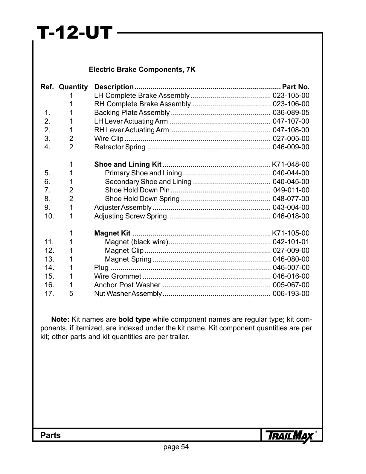 1 Shoe and Lining Kit ...................................................... K71-048-00
