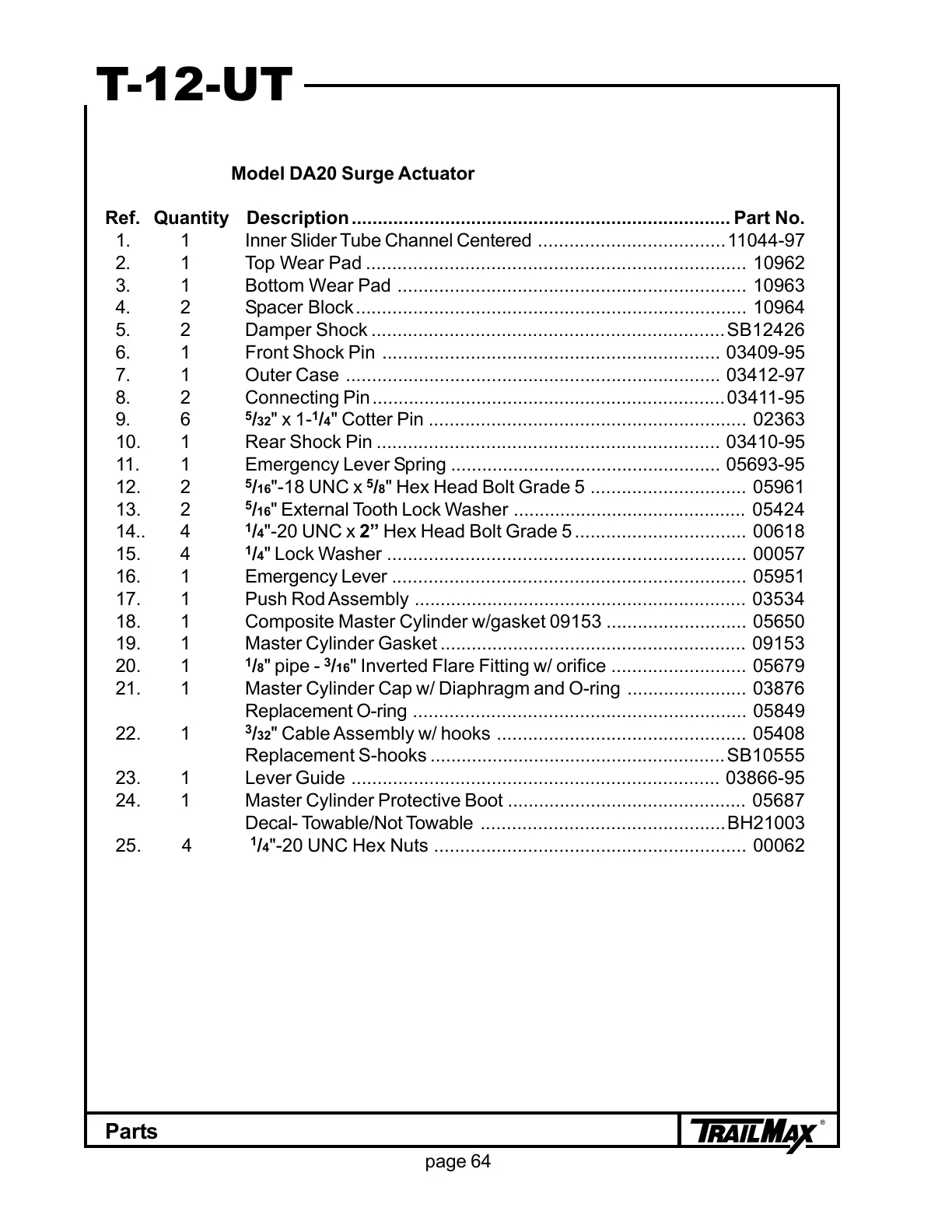 21. 1 Master Cylinder Cap w/ Diaphragm and O-ring ....................... 03876