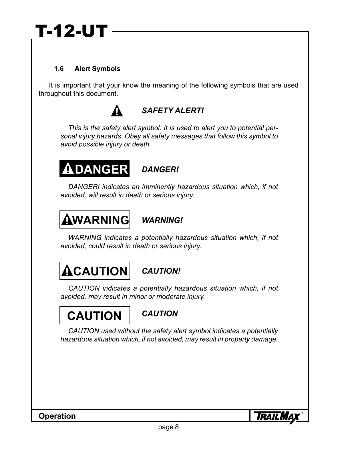 CAUTION used without the safety alert symbol indicates a potentially