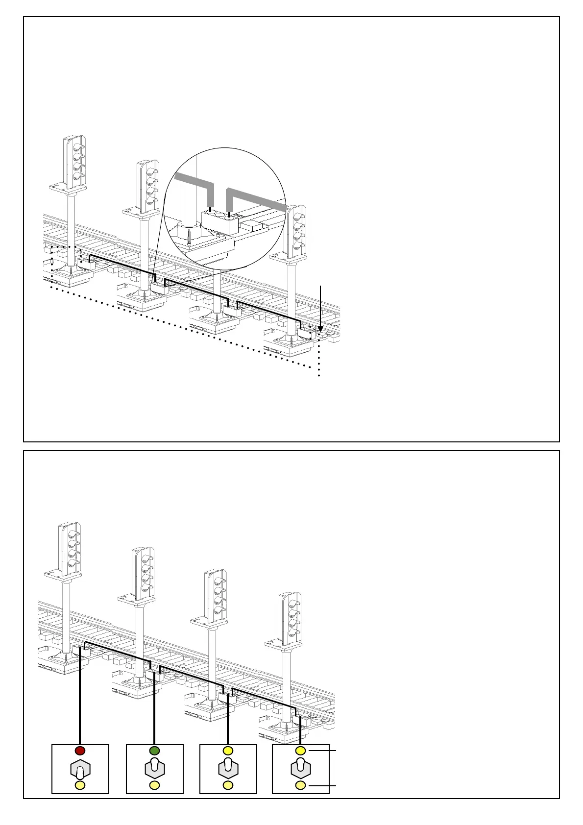 which show yellow when the next signal is red. The example below shows 4 signals linked,