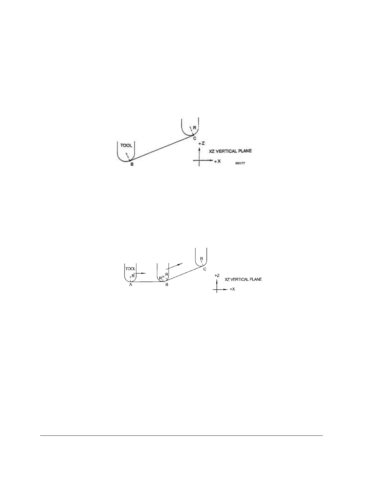 Note how the tool at the beginning point (point B) starts below (in the Z direction) point