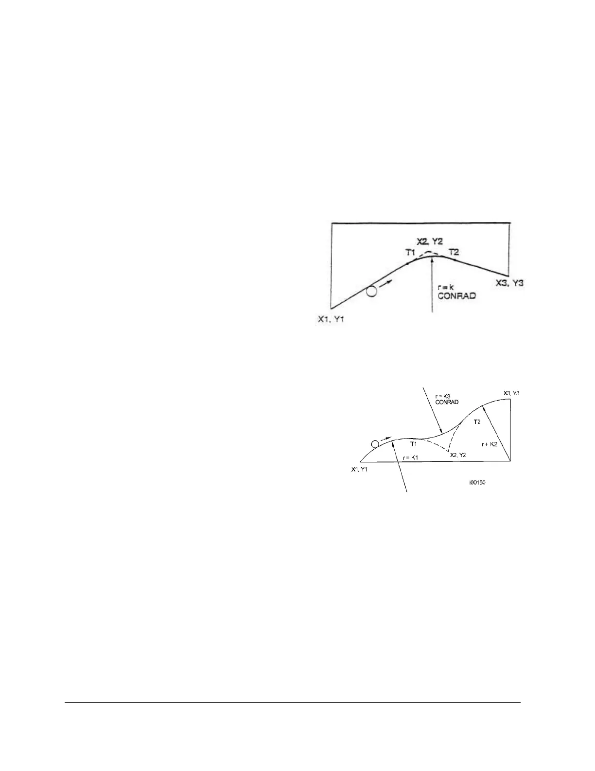 continuously from X1, Y1 through T1, r=k, T2 to X3, Y3.