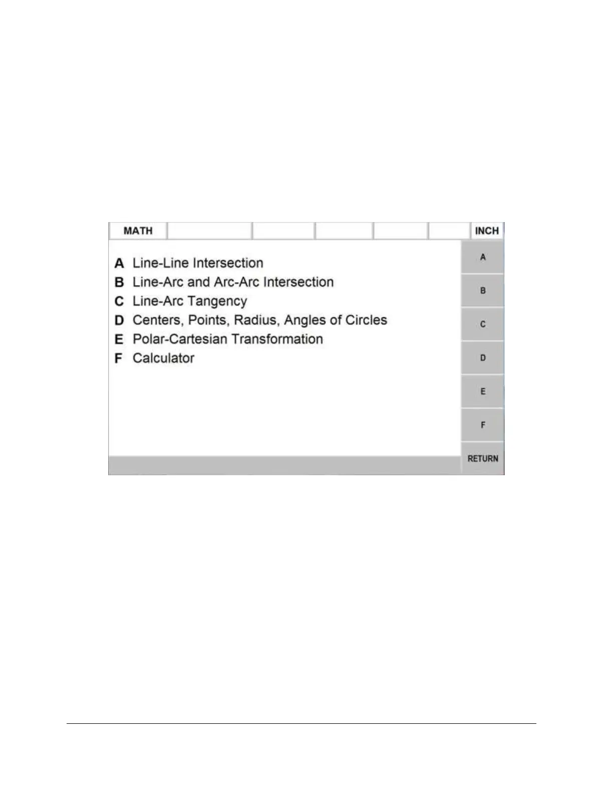 intersection of a straight line and an arc or circle, press the B softkey. The screen will