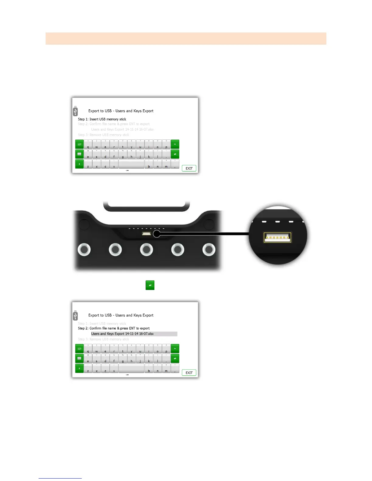 feature, Traka21 it will export the current user and key details to a Spreadsheet on a USB memory Stick. The