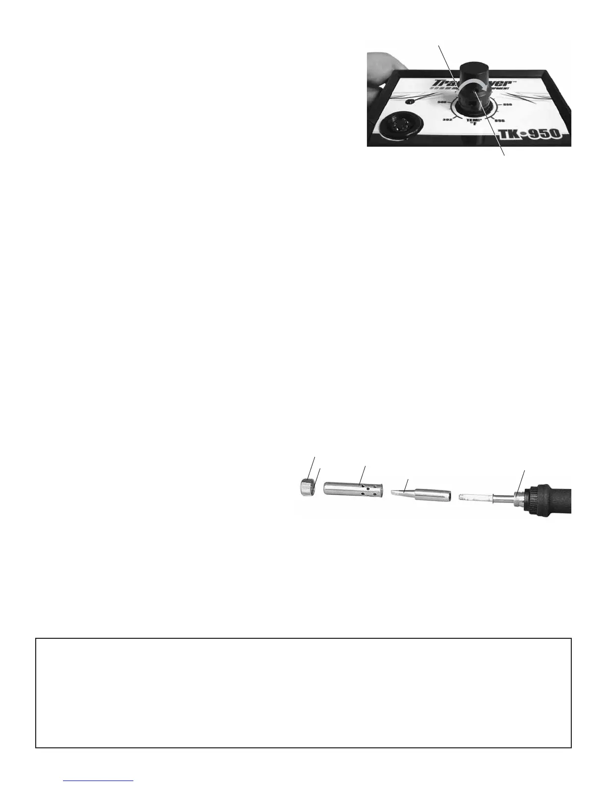 3. Do not leave the unit turned on for long periods of time when not in use. Prolonged heating can degrade the tip even