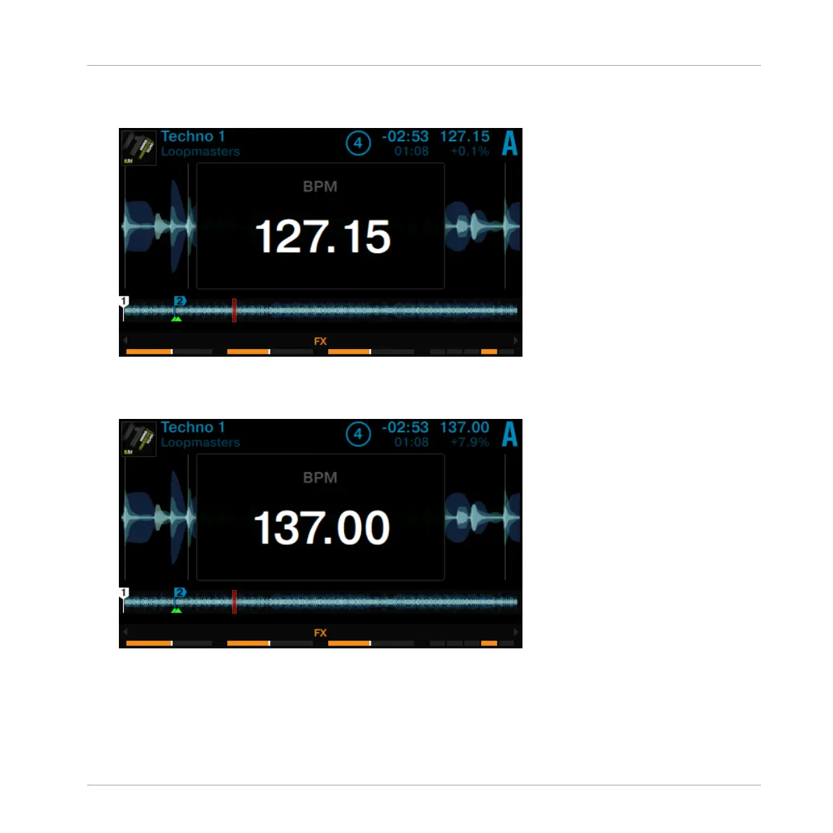 If the Deck is assigned as the MASTER, tempo adjustments made with the BROWSE encoder will