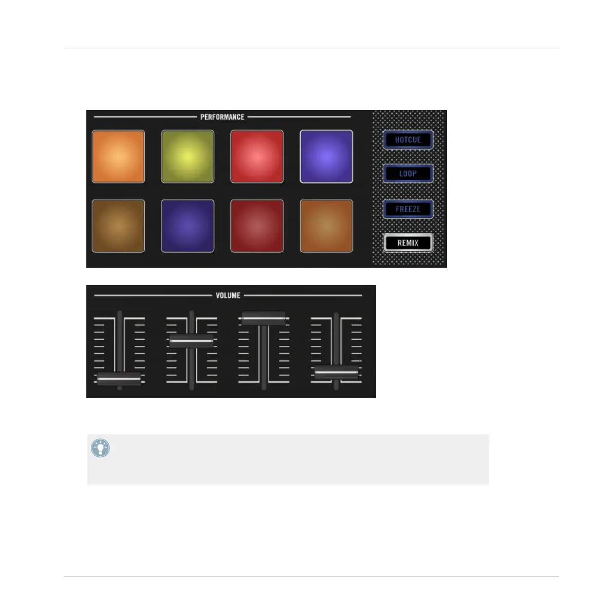 the track playing in deck A. The Samples will continue to loop within their Remix Slot.