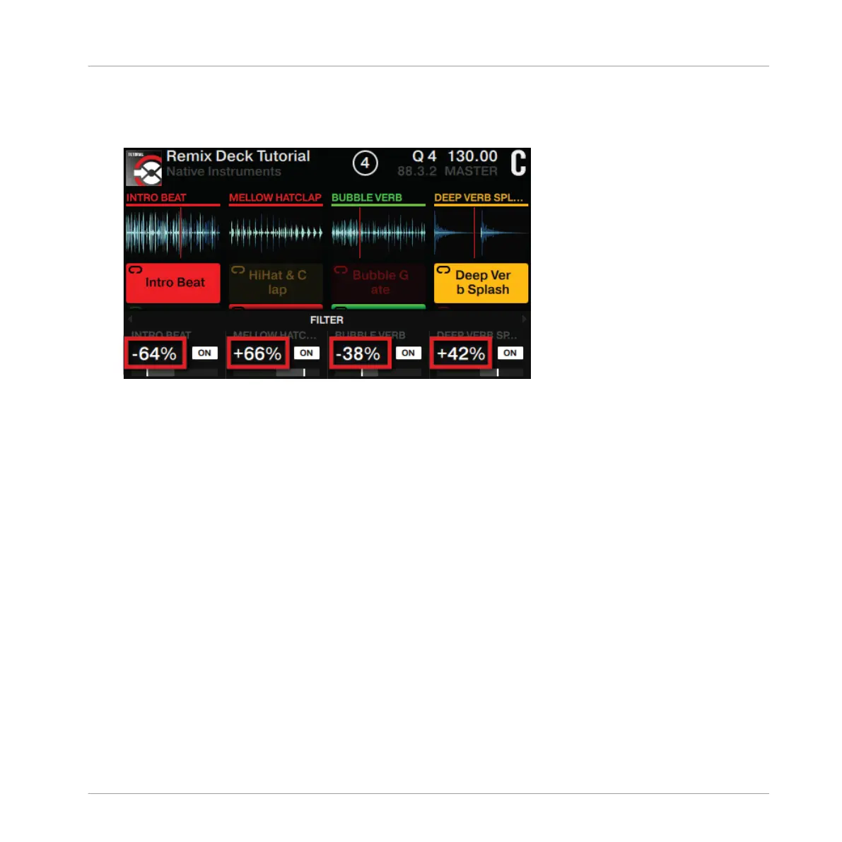 soon as the ON Buttons are enabled in this Performance Mode, the audio effect from FX Unit