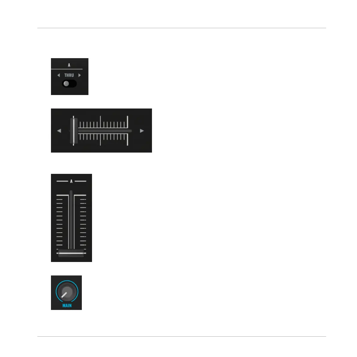 • On channel A, the channel fader is set to minimum, the EQ knobs, the GAIN knob, and